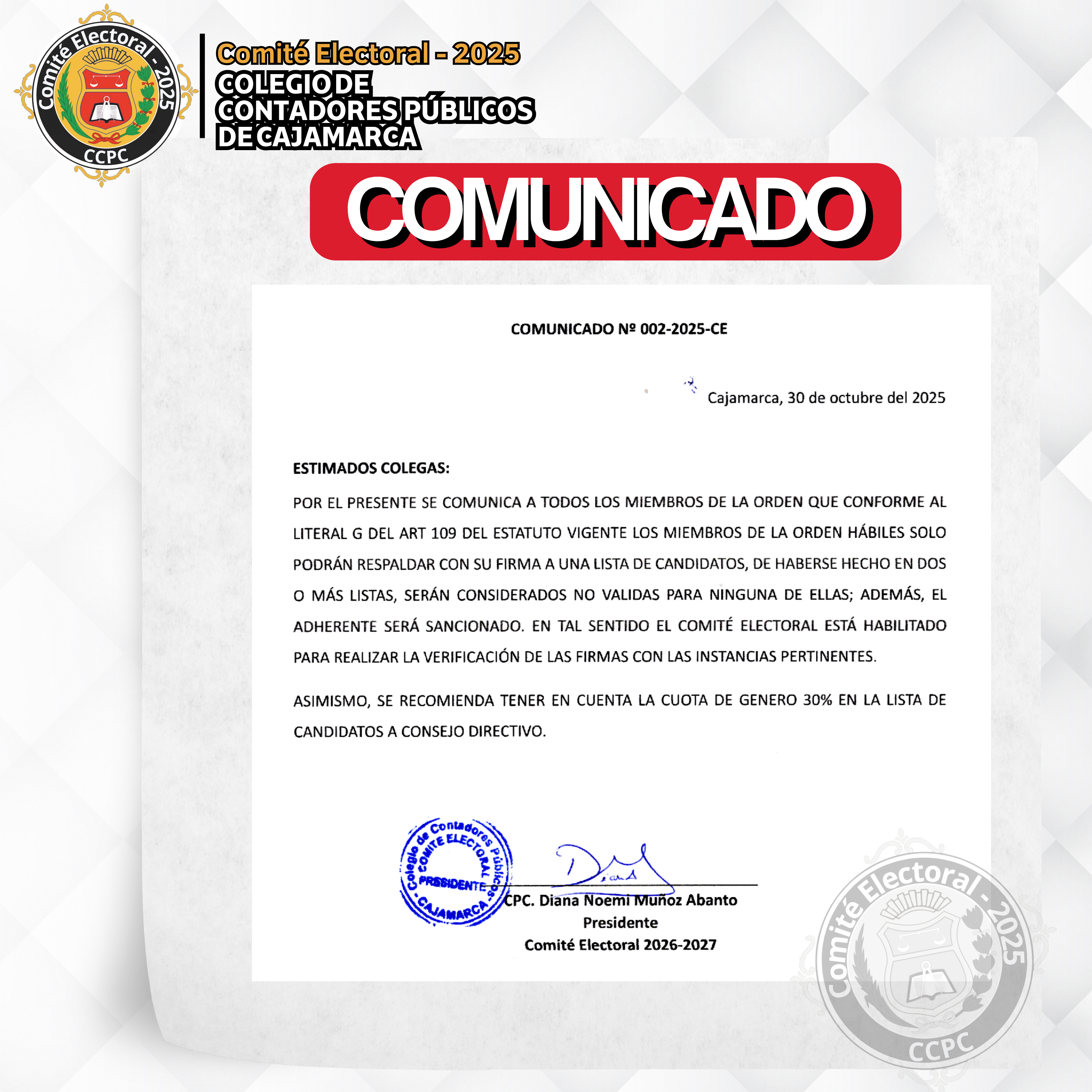 | A NOMBRE DEL COLEGIO DE CONTADORES PÚBLICOS DE CAJAMARCA | ||